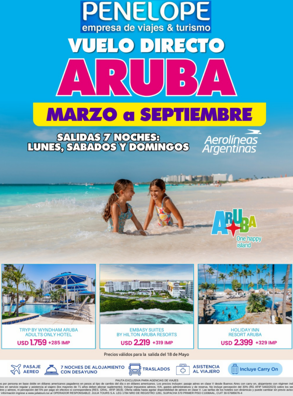 🏨 Eagle Aruba Resort & Casino (las habitaciones cuentan con cocina) USD 1.790 Desayuno ☕ / USD 2.430 Pensión Completa 🍽️
