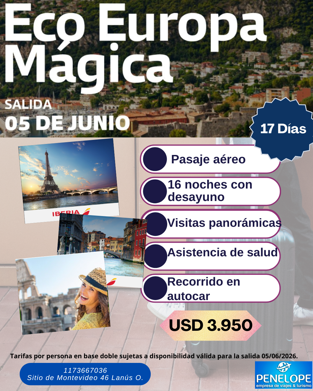- Salida 05/06/2026 – Tarifa final por persona en base doble USD 3.950