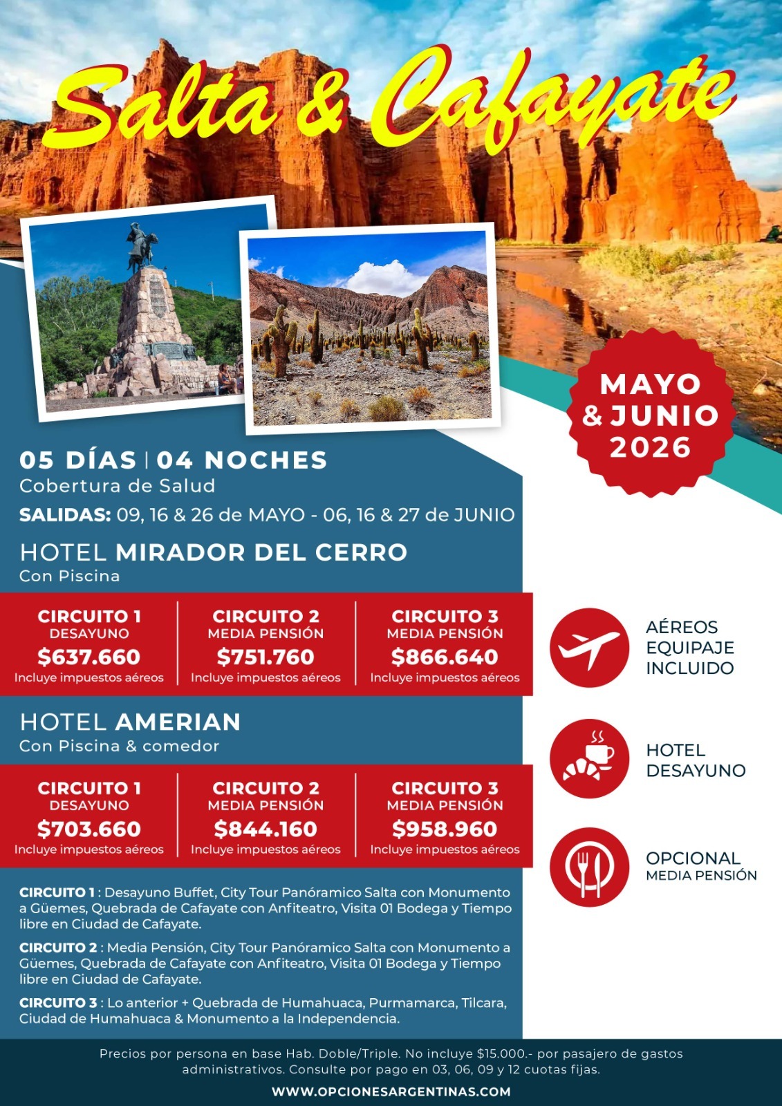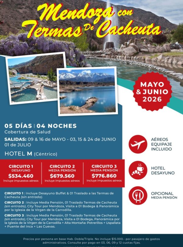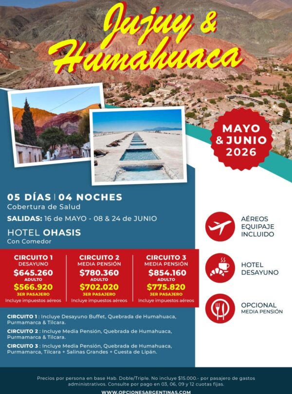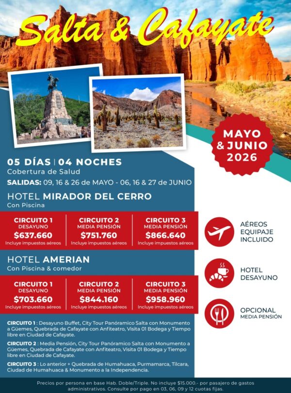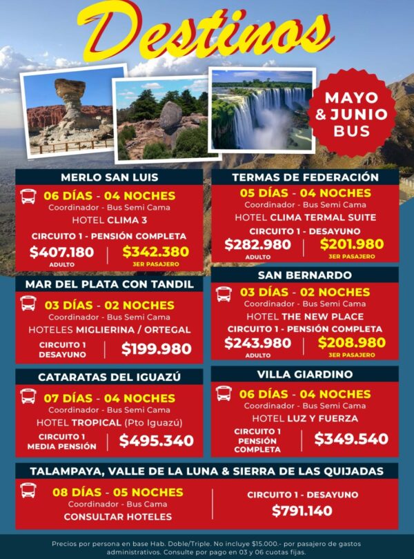 ℹ️BUS: SEÑA: 50% – SALDO 20 DÍAS ANTES // AÉREO: SEÑA: 50% – SALDO 40 DÍAS ANTES