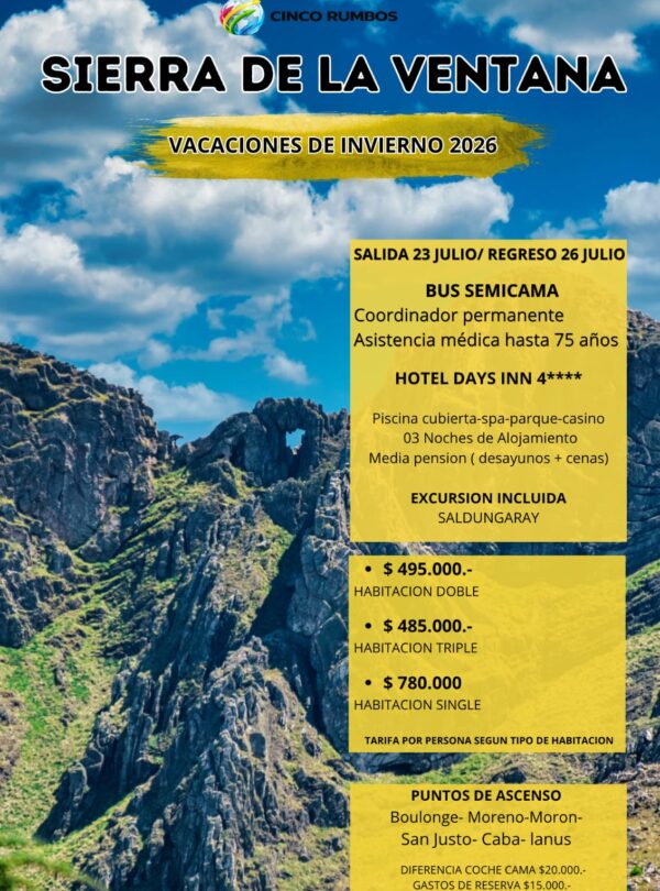 🏔️ SIERRA DE LA VENTANA | Vacaciones de Invierno 2026
