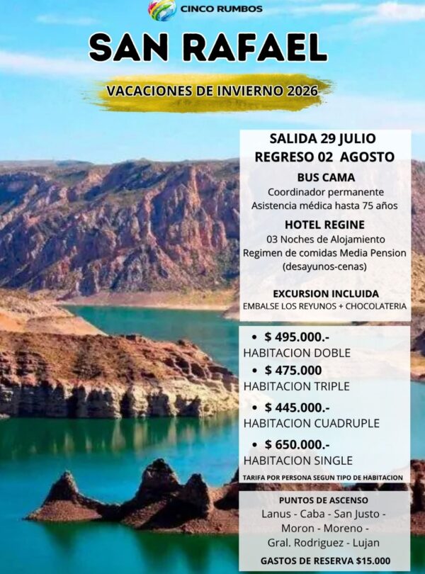 🏞️ SAN RAFAEL | Vacaciones de Invierno 2026